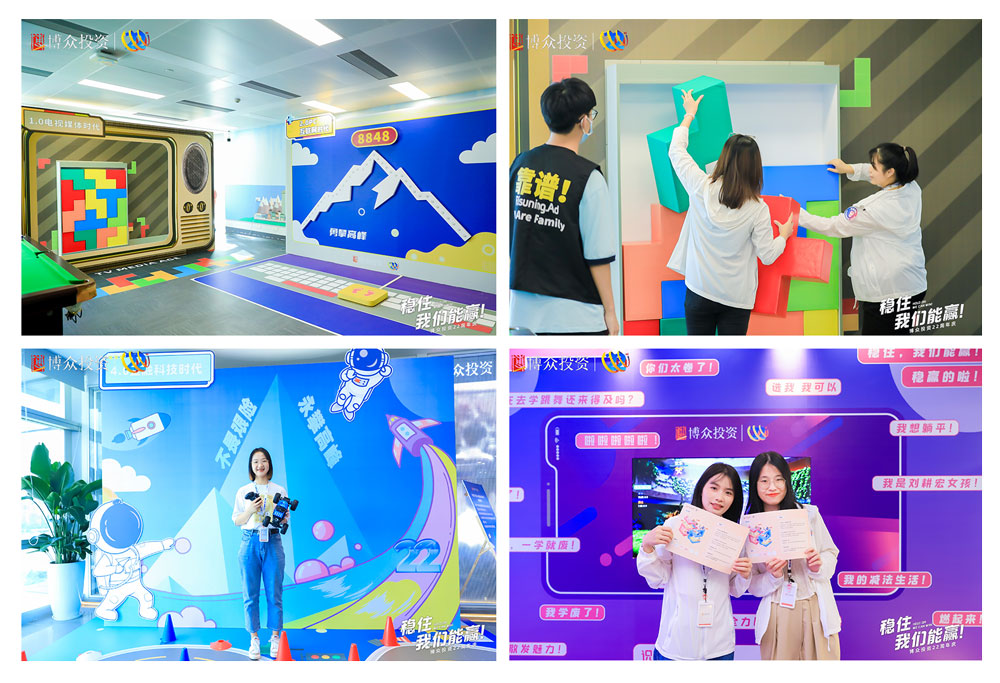 由廣州睿陽廣告有限公司策劃并執行的博眾投資22周年慶典于2022年7月12日在廣州辦公區天德廣場舉辦,活動以“穩住,我們能贏!”為主題,參與人數為850人左右。