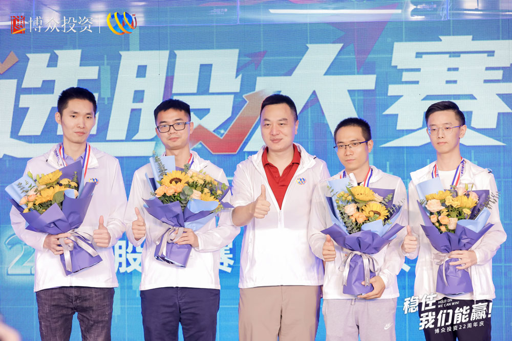 本屆選股大賽頒獎儀式到此就結束,接著開始慶典的下一議程,舉行新物種投資實驗室成立暨易米基金戰略合作儀式。由易米的劉總以及來自博眾的劉剛老師、吳志輝老師、劉冰老師、陳宗寶老師以及林杰老師來到啟動儀前完成啟動儀式。